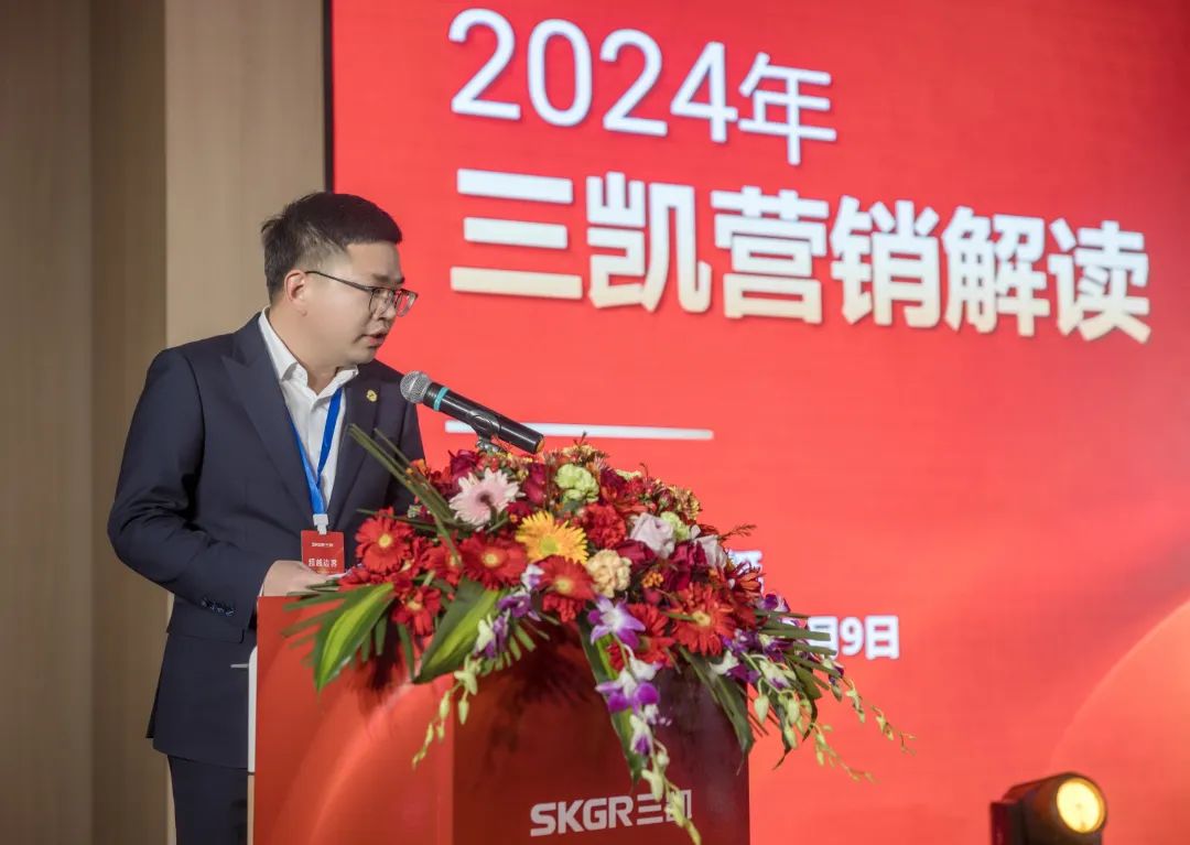 三凯东部大区总监颜挺挺作为销售代表解读2024年营销战略。他提到,2024年三凯传动针对市场需求将国内市场分为五大战区,为客户提供更好的服务、更高效的响应速度、更个性化的营销策略,整合市场动态,优化资源配置,提升品牌竞争力。并梳理归纳产品线,确保优势产品稳定发展,重磅新品开拓新市场,加快从单品升级成具有竞争力的系统解决方案。