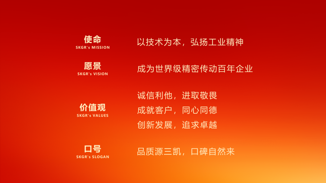 大会开端,三凯总经理江建斌向全国销售服务中心代表们正式发布并解读了全新企业文化,通过对使命、愿景、价值观的深度优化,重塑企业精神内核。他希望,三凯传动用崭新的文化引领,打造精益求精、积极进取的胜利之师,驱动企业健康、稳步、可持续发展。他强调,三凯传动将坚持以终为始的发展定位,朝着世界级工厂、百年企业的目标奋勇向前!